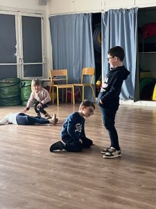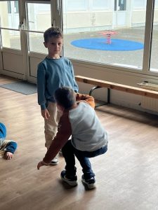 Expression corporelle 12 Jan, 2026 | GS Vue(s) : 120 Emmanuelle, animatrice à l’UGSEL, est venue faire de l’expression corporelle aux enfants. _1 ère séance:_ Un enfant faisait le vent et l’autre la feuille soulevée par le vent.