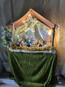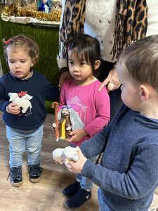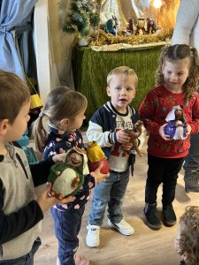 Après être allés à l’église Saint Pierre pour la Célébration de Noël, les classes de PS se sont retrouvés le lundi suivant dans la salle de motricité devant la crèche préparée par Karine.